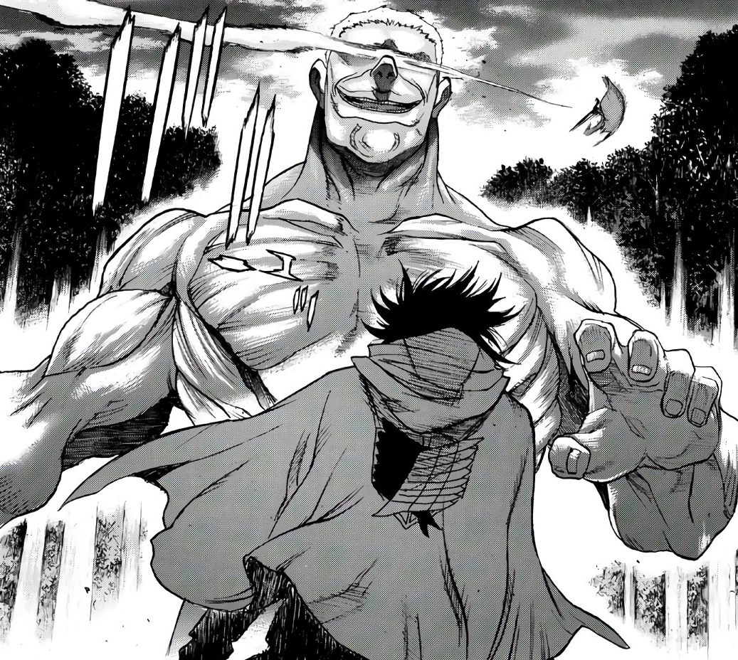 Using an explosive brought by Angel who was accompanying the Corps on the expedition he allows himself to be caught by the Titan. But when a Titan-worshipping cult opens one of the gates a Titan wreaks havoc consuming the cultists. This is a list containing all the chapters from the Attack on Titan.
