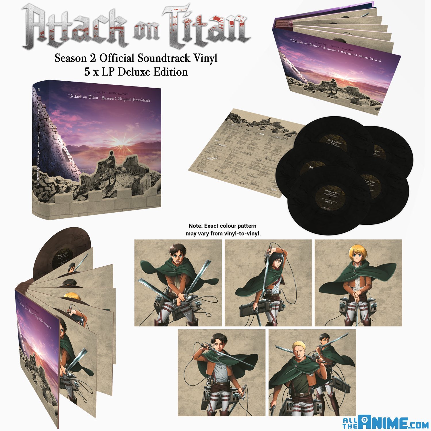Attack On Titan Season 2 Soundtrack 5 X Lp Vinyl Deluxe Edition